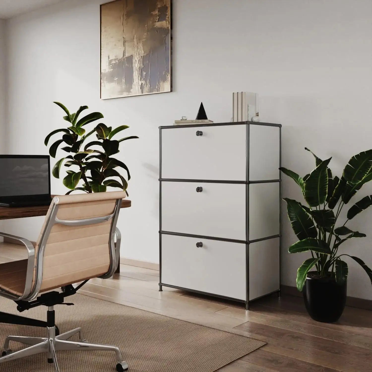 Kommode in Weiss mit 3 Schubladen – Schwarzem Chrom